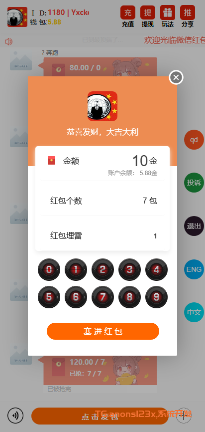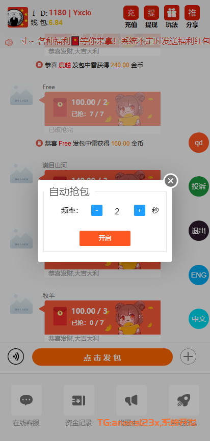 抢红包源码,扫雷红包源码,红包系统源码,机器人红包源码,多语言,功能齐全